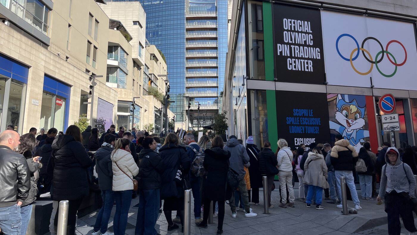 On a sunny Sunday morning smack-dab in the middle of the Winter Olympics, the line to enter Milan's Official Olympic Pin Trading center was out the door and steadily growing.