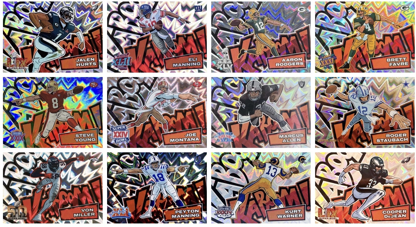 Kaboom cards are rare insert cards found in Panini’s Absolute Football product and are known as “case hits,” meaning typically only one is found per case. Because of that rarity, combined with colorful artwork, Kaboom cards have become some of the most sought-after modern inserts in the hobby.