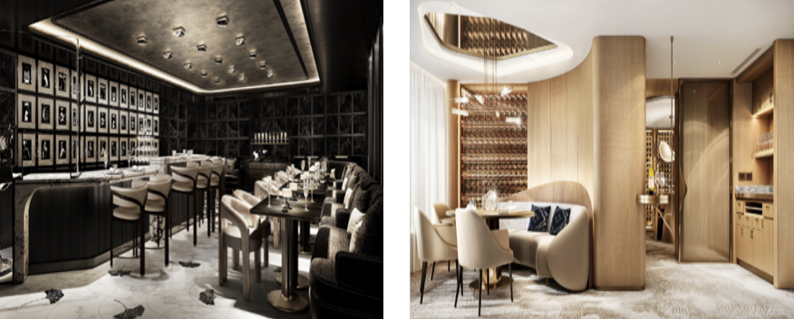 On the same floor as Amber are the three-Michelin-starred Sushi Shikon, the one-Michelin-starred Kappo Rin and the modern French bistro SOMM. The remarkable culinary offer is completed by the new champagne bar BLANC DE NOIRS, dedicated to premium cuvées.