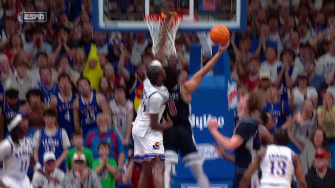 Flory Bidunga protects the paint for the Jayhawks with a late-game swat.