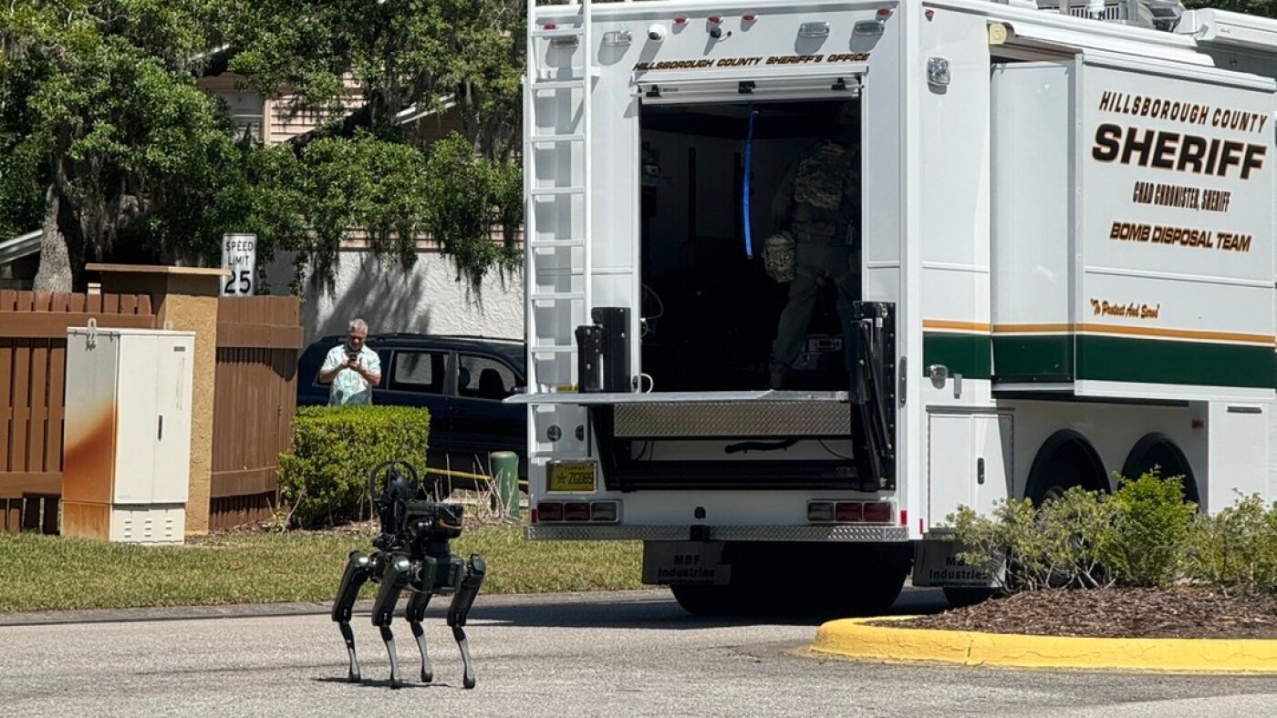 The Hillsborough County Sheriff’s Office responds to a neighborhood close to the University of South Florida campus, Friday, April 24, 2026 in Tampa, Fla.