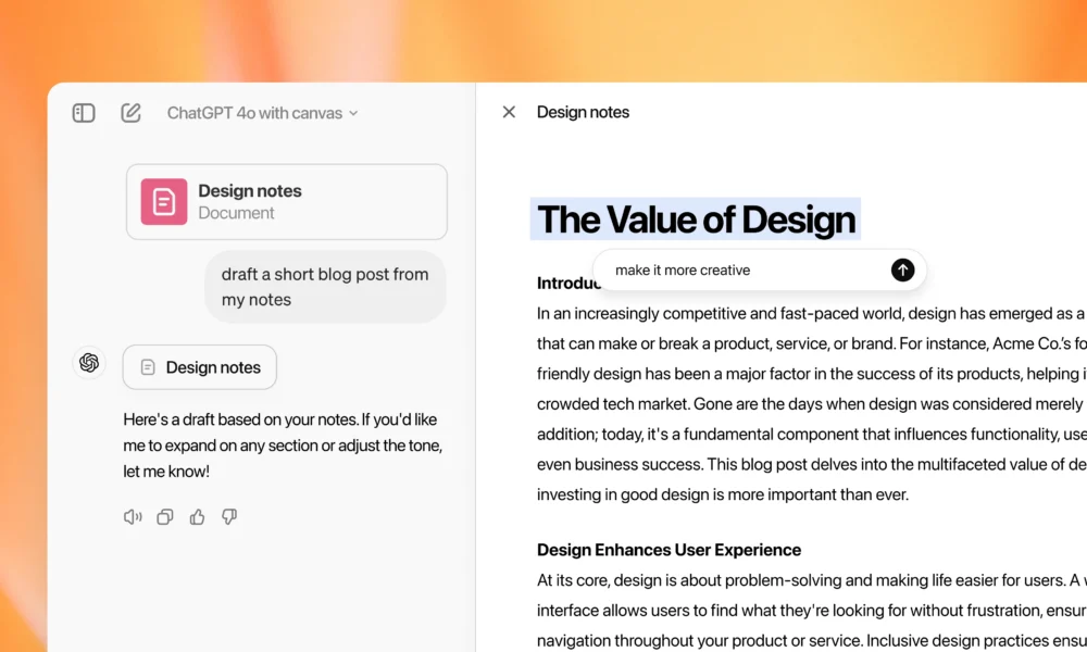 The goal of ChatGPT Canvas is to provide a seamless environment in which users can work on longer, more complicated tasks that require multiple revisions, in-depth analytics, and ongoing AI support. This marks a significant departure from the standard chat interface, which, while great for quick questions and short tasks, can become limiting when dealing with larger projects.